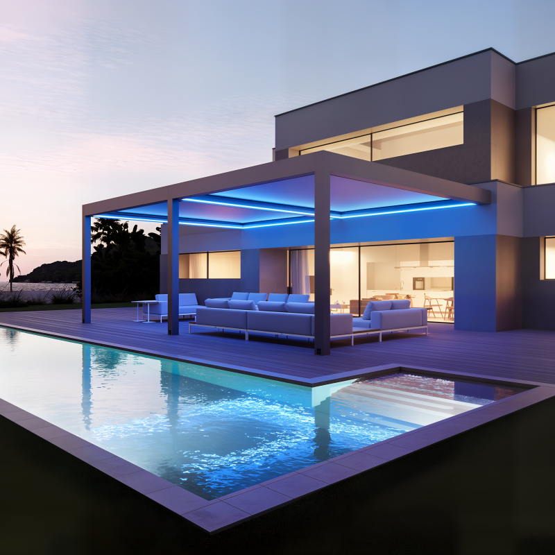 Take charge of your pergola anytime, anywhere. Our intuitive all-in-one remote lets you synchronize louver angles and lighting atmosphere with a single touch.